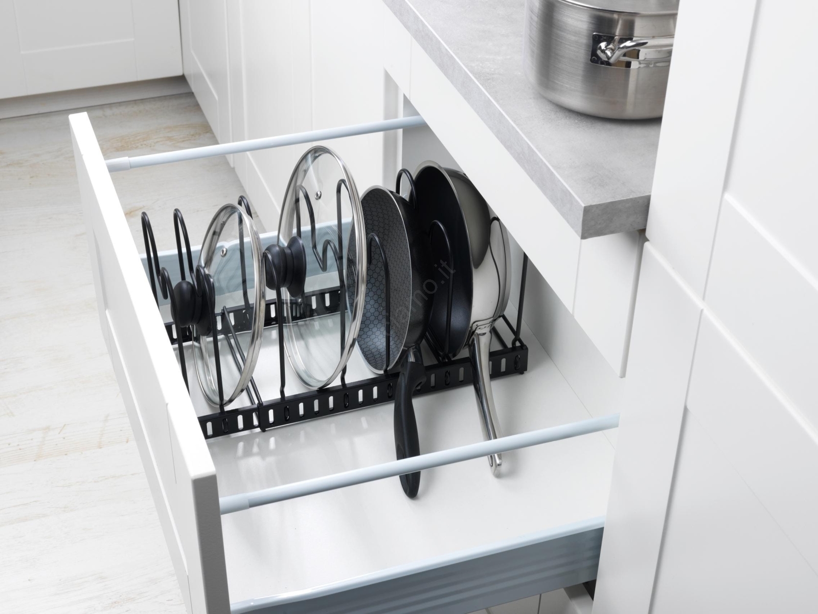 • Permette un riponimento salvaspazio e ordinato di coperchi, padelle, teglie o taglieri.