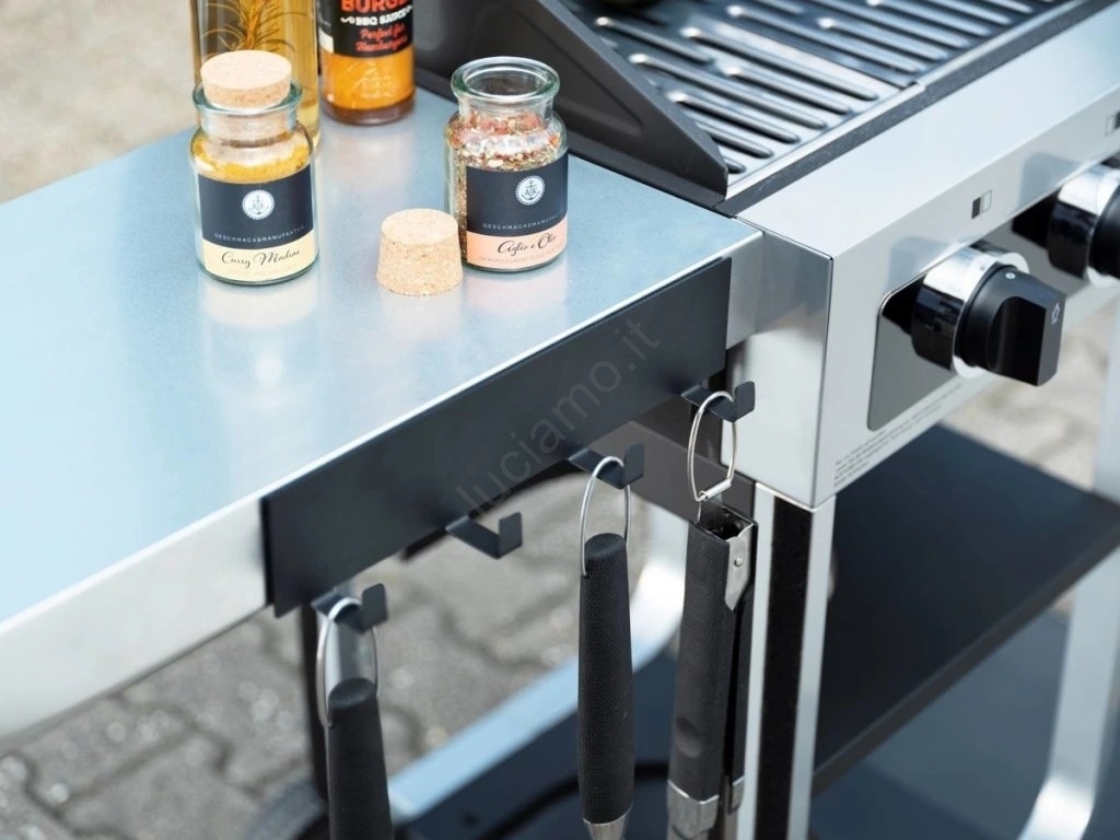 • Libera la superficie di lavoro e mantiene l'ordine durante la grigliata.