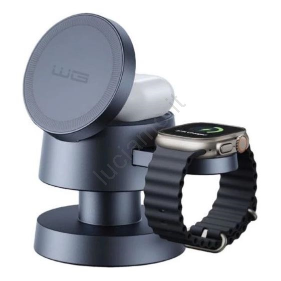 • La ricarica è completamente senza cavi: basta appoggiare i dispositivi sulla base — utilizzo semplificato e zero grovigli di cavi.