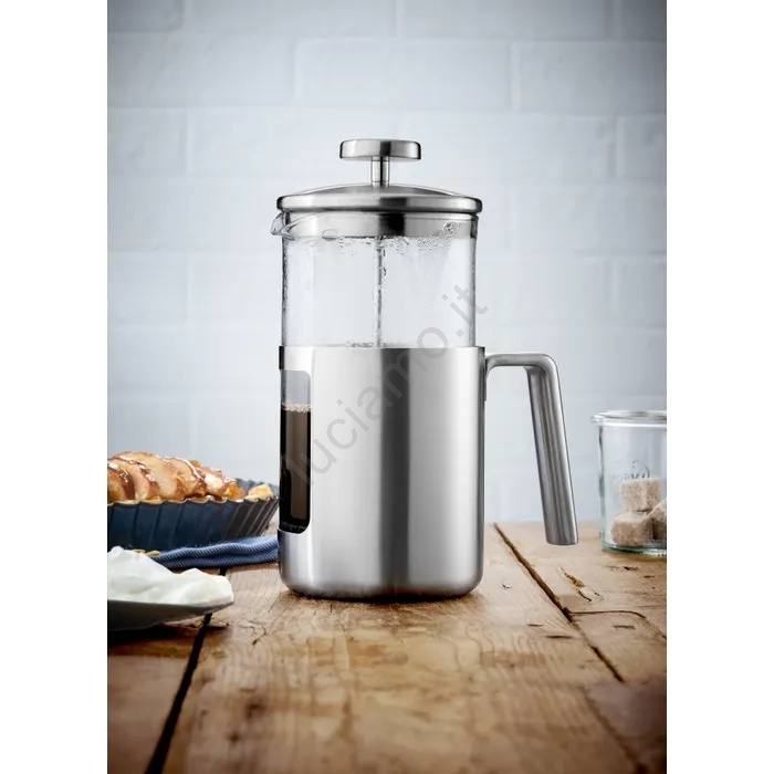 • Sistema a stantuffo con filtro a maglia fine in Cromargan, che separa efficacemente i residui di caffè dalla bevanda pronta.