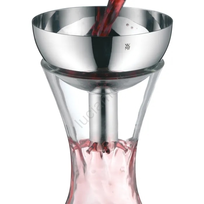 • L'imbuto da decantazione della collezione VINO è un elegante strumento progettato non solo per rimuovere i sedimenti dal vino, ma anche per ossigenarlo in modo ottimale e permettere al suo bouquet (aroma) di svilupparsi pienamente.