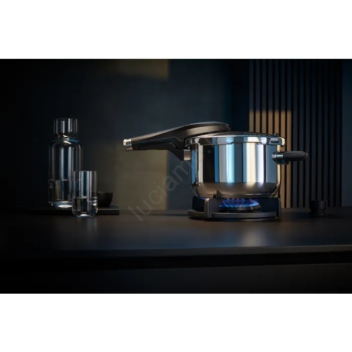 • Sistema di sicurezza – rilascio automatico del vapore, indicatore di pressione e meccanismi di protezione per un'apertura sicura.