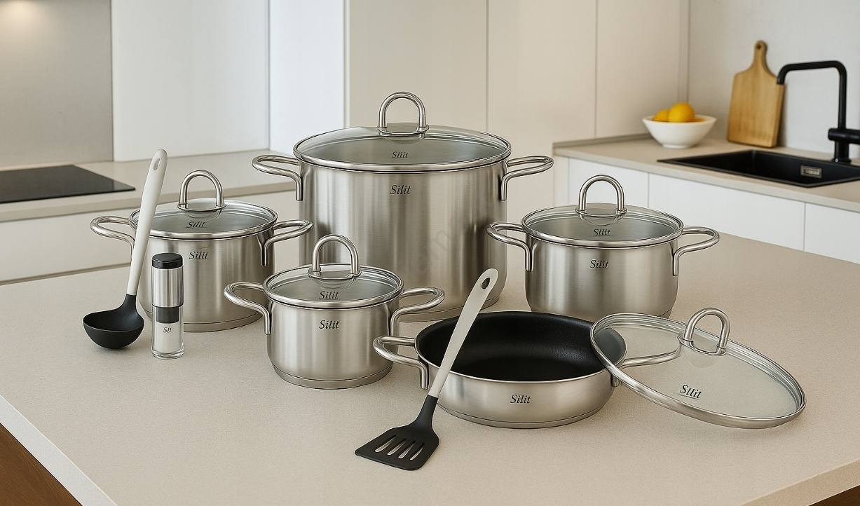 • Il set di pentole e padelle Silit Diamant offre un equipaggiamento completo per la cucina domestica di livello superiore — comprende diversi pezzi adatti a varie tipologie di preparazioni.