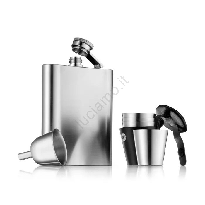 • Set elegante con fiaschetta e bicchierini „Manhattan“ – confezione pratica per gite, feste e momenti conviviali.