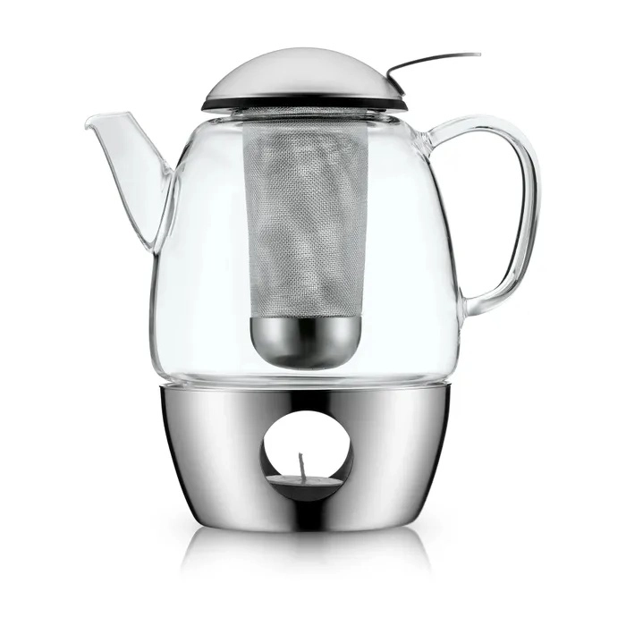 • Il set è composto da una teiera dal volume di circa 1 litro, da un filtro estraibile per tè e da uno scaldavivande in acciaio inossidabile per tea light.