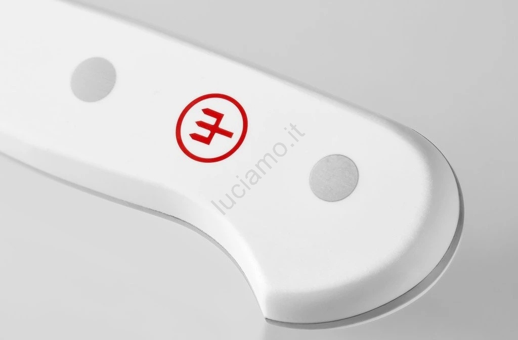 • Il manico è realizzato in POM (poliossimetilene), materiale sintetico; è di colore bianco resistente allo scolorimento ed è fissato con tre rivetti in acciaio inossidabile.