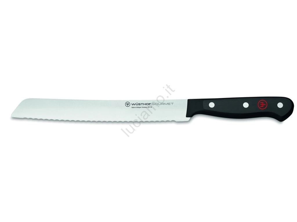 • Composizione del set: coltello per sbucciare (6 cm), coltello per verdure (8 cm), coltello da cucina universale (18 cm) e coltello da pane (20 cm) con lama ondulata.