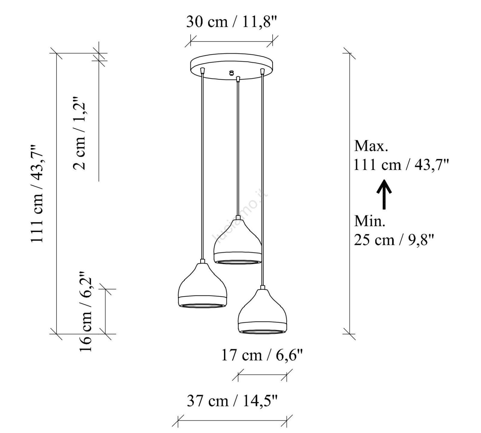 • Lampadario su filo YILDO 3xE27/40W/230V