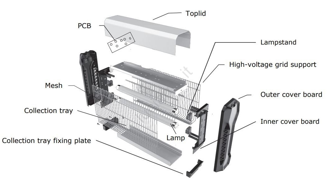 • Vassoio rimovibile e lavabile per la raccolta degli insetti morti.