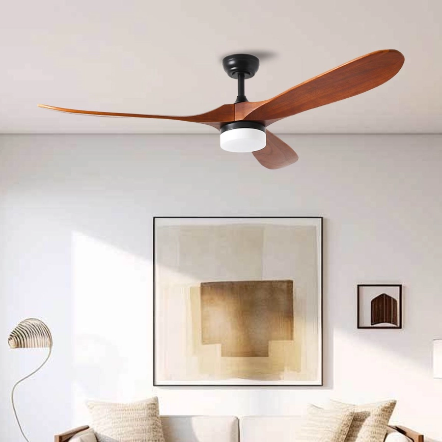 • ZEVENTI - ventilatore da soffitto LED GINOSA LED/18W/230V 3000/4000/6000K Wi-Fi Tuya nero/rovere + telecomando