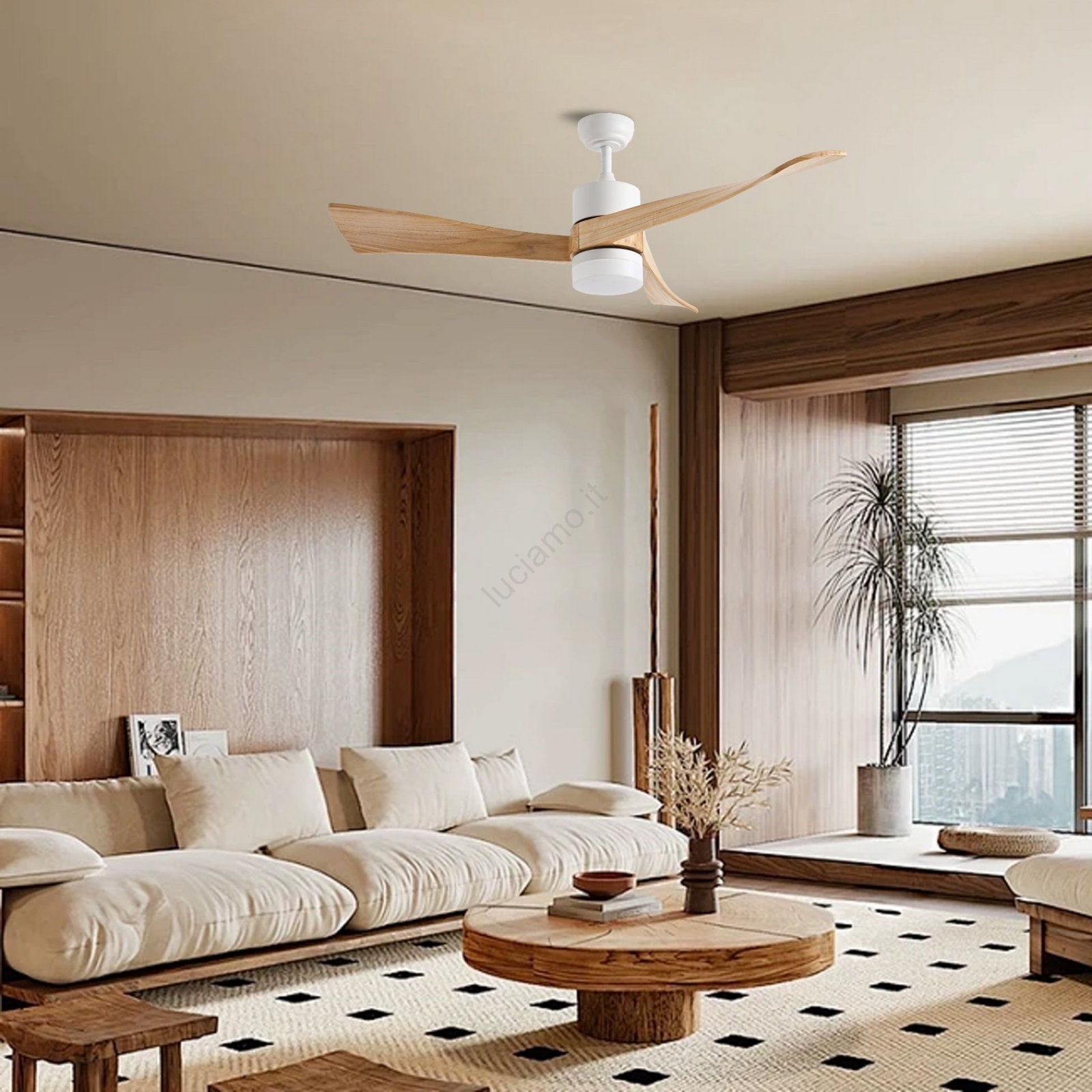 ZEVENTI - Ventilatore da soffitto LED NATURITO LED/18W/230V 3000/4000/6000K Wi-Fi Tuya bianco/rovere + telecomando
