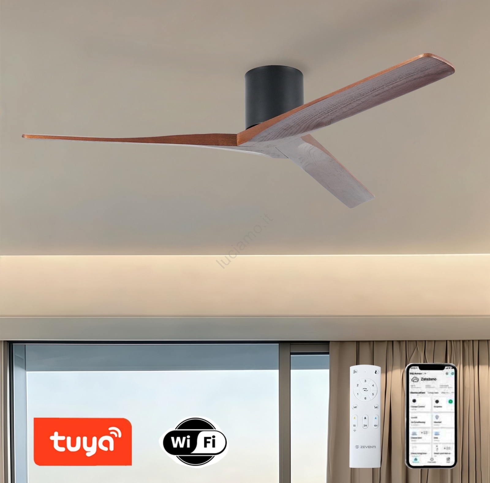 ZEVENTI - Ventilatore da soffitto VELLON Wi-Fi Tuya nero/noce + telecomando